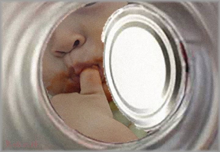 果物の缶詰を皿に移さずに直接手と顔突っ込んで食べて、