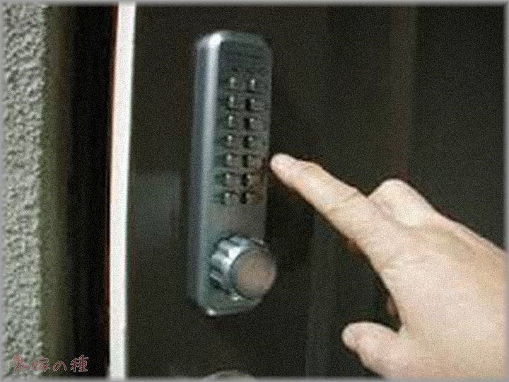 私の家の鍵は、暗証番号式のタイプで、4ケタ暗証番号をいれないと鍵はあきません。