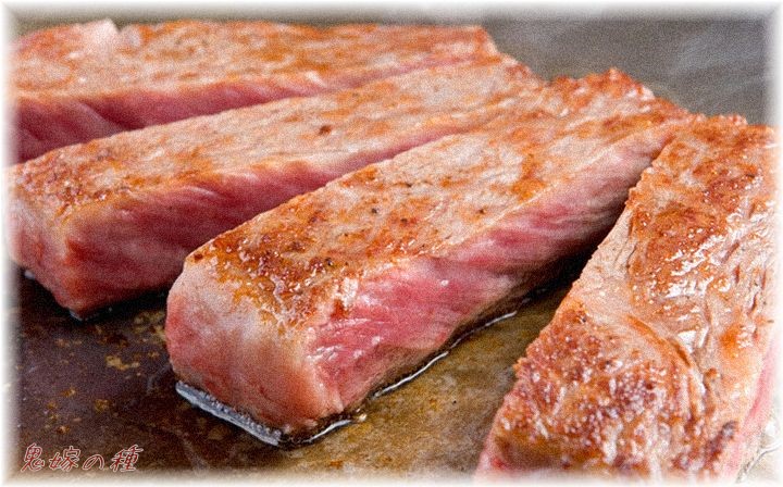 ニュージーランド赤身牛肉450gを2枚焼いていた。