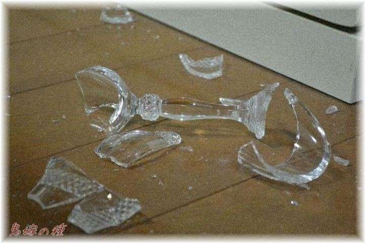 とうとうBがキレてAに怒鳴ったところ、Aが驚いてグッズを落としてガラス割れる。