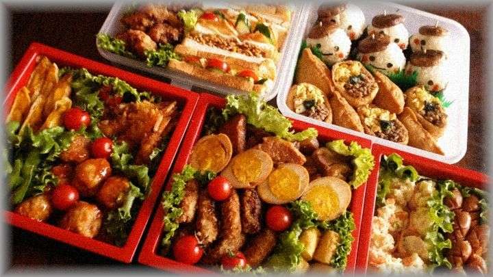 家族で集まって食べるスタイルで、お重3段に詰めたやつ。
