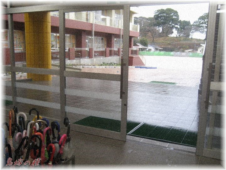 車の中で待ってたら他の保護者も傘持って徒歩で何人かお迎え来てて