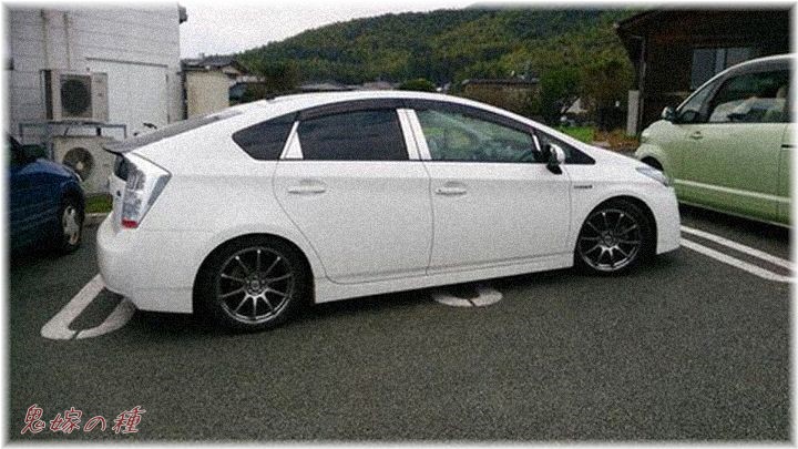 通路横の駐車スペースの車が、いつも通路にはみ出すようにナナメに停めてる。