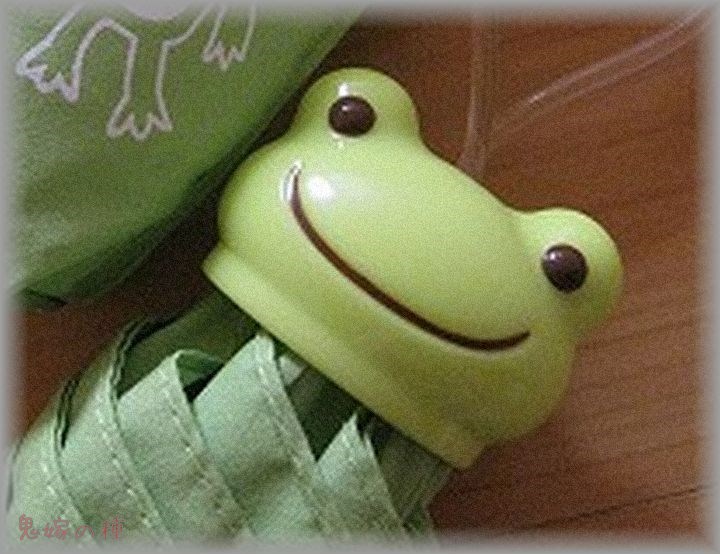 その内私の折り畳み傘…の柄についたカエルを掴み