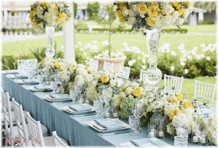 従兄の結婚式は、新婦知り合いのレストランで、レストランと庭園をワンフロアに見立てた半ガーデンの式