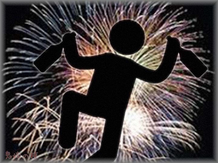 3年目、2歳児は機嫌良く花火を見るが、0歳児は泣く。