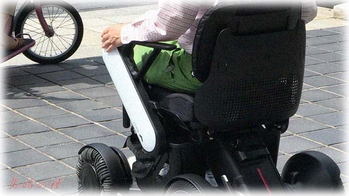 かなり重度で足で電動車いすを操縦?してた。