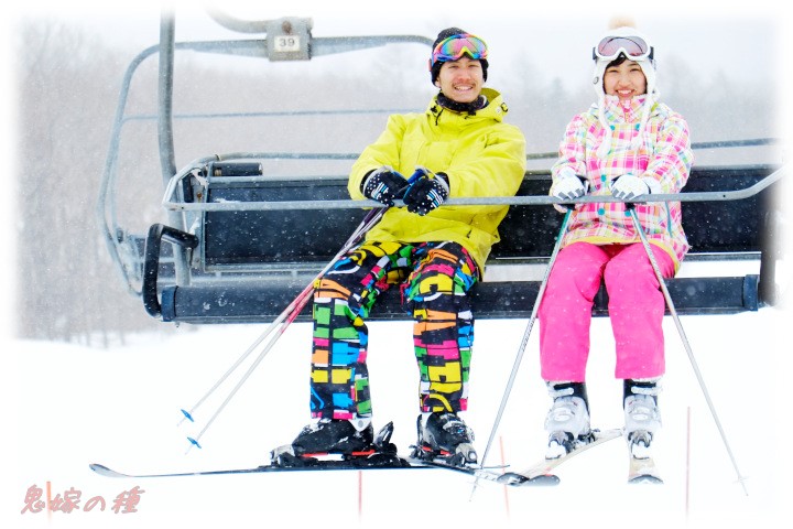 リフト乗り場で、自分の前に並んでいた男女二人連れが