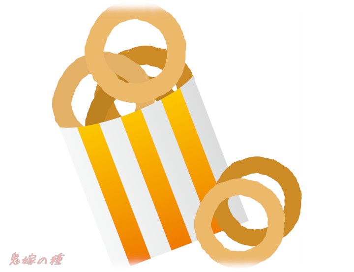 紙の袋から飛び出しているオニオンリングを掴みそうになったから