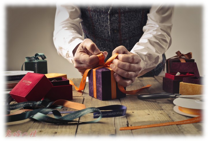 進物箱をご注文。包装していると、